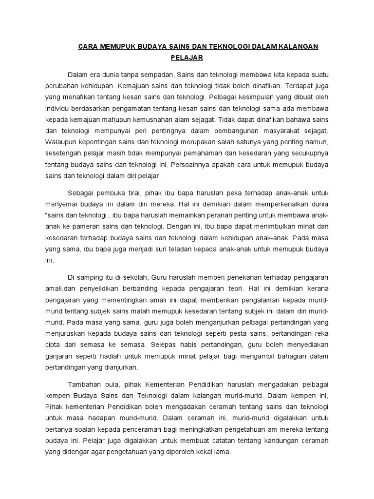Cara Memupuk Budaya Sains Dan Teknolgi Dalam Kalangan Pelajar Pdf